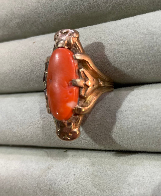 Antique French Gold & Red Coral Ring