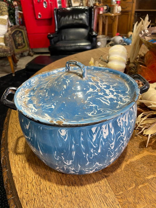 Large Lidded Graniteware Bucket