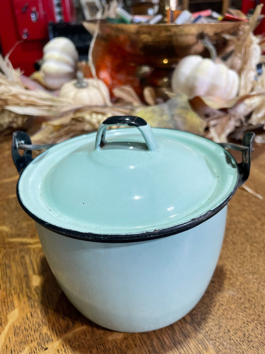 Sold outMint Lidded Graniteware Bucket