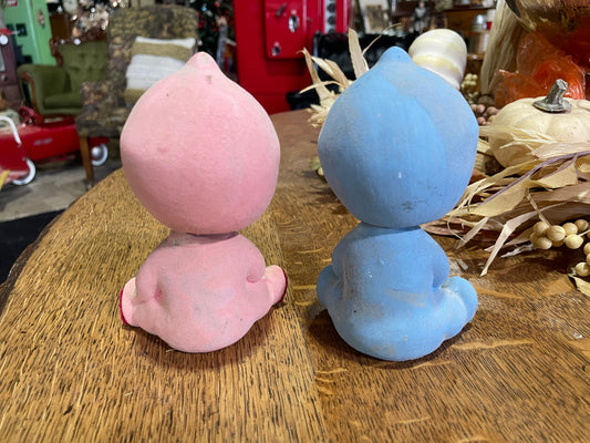 Pair of Vintage Flocked Nodding Dolls